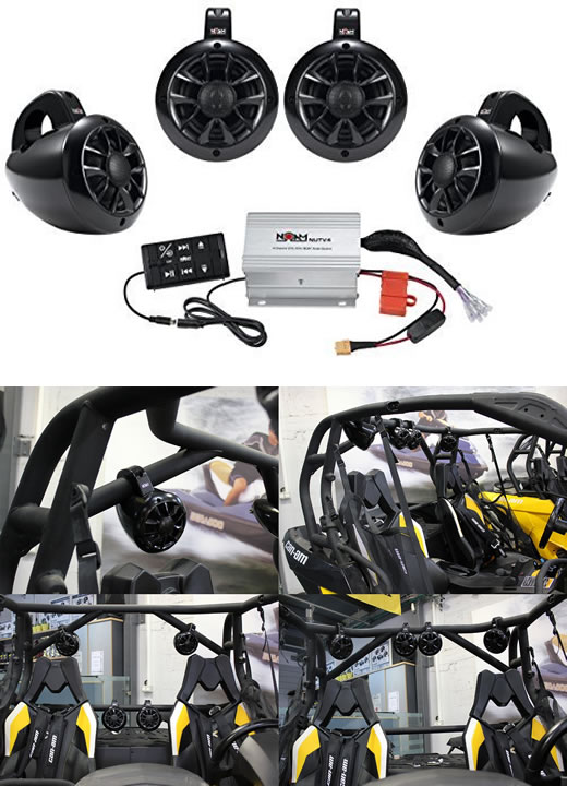 Don't let the price fool you. this system will ROCK your ride like no other system will. Tow-Way 4" Marine speakers powered by a waterproof 4 channels amplifier with an advanced Bluetooth remote control that has a built-in AUX input and light to work in dark conditions