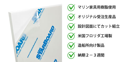 ご注文を頂いてから米国フロリダ工場に発注します。1個1個が職人の手作りのため、2−3週間前後のお時間を頂きます。 スターボードと呼ばれるマリン専用樹脂を使用して組み立てられます。既製品ではありません。現地で組み立ててから米国から日本に発送されます。