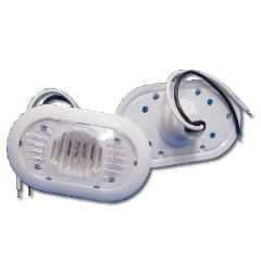 新型のエクステリアライトです。2355、2655、2858などフライブリッジ、アフトデッキ、室内足下照明などボートのアウテリアやインテリアで多く使用されています。旧型UN100と比べて形が楕円形になりました。