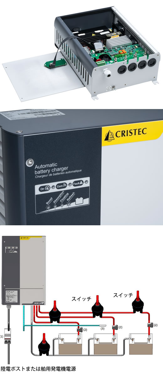 CRISTECは、世界中で15万台以上のバッテリー充電器を販売しており、バッテリー充電技術分野において世界で最も信頼性の高いメーカーの一つです。HPOWERシリーズは、CRISTECが長年培ってきた高品質バッテリー充電器を、過酷な海洋環境下でも世界中で使用できるよう特別に設計した製品です。