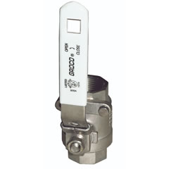 Groco's Stainless Steel Full-Flow Ball Valves feature stainless steel bodies and components, plus PTFE seats and seals. 1 1/4" sizes and larger include a grease zerk fitting for lubrication (use only with the valve in the open position) or for draining. A thumb-release locking mechanism assures the valve remains in the position selected.