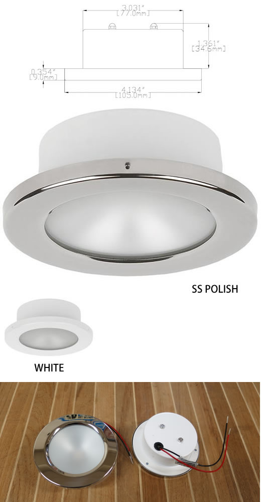 Featuring 2-wire power & dimming, T105/T155/180 PowerLED fixtures easily replace existing legacy (halogen) spots negating the need to run extra wires. Integrated drive electronics eliminates the need for remote driver installation. Carefully designed optics result in fully blended illumination free of annoying artifacts or distracting hot spots. A robust thermal management system results in maximum life with minimal lumens depreciation over its expected working life (50,000+ hrs). T155/180 models offer single or bi-color dimming when paired with Imtra's single or dual channel PWM dimmer module. These fixtures feature a traditional raised-round bezel in several finishes. The T155/180 PowerLEDs securely mounted with three screws and are ideal for hard ceilings (e.g. fiberglass or wood). It is a good choice for wet areas (e.g. hard tops, arches, walkway overhangs, shower stalls). Made in the USA and covered by a 5 year warranty!