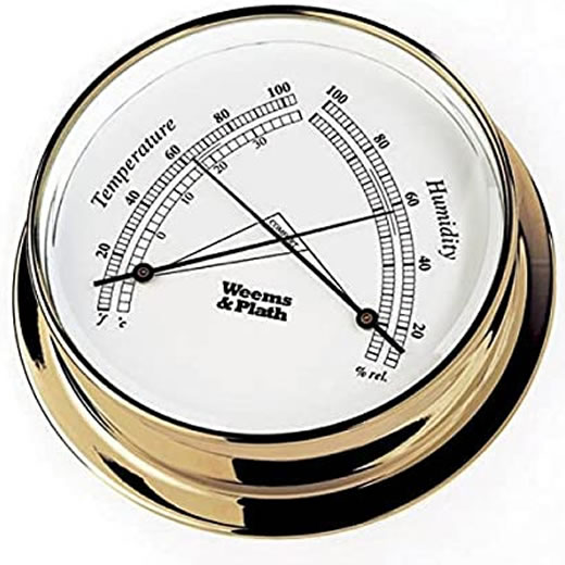 Hygrometer shows percentage of relative humidity on the right scale