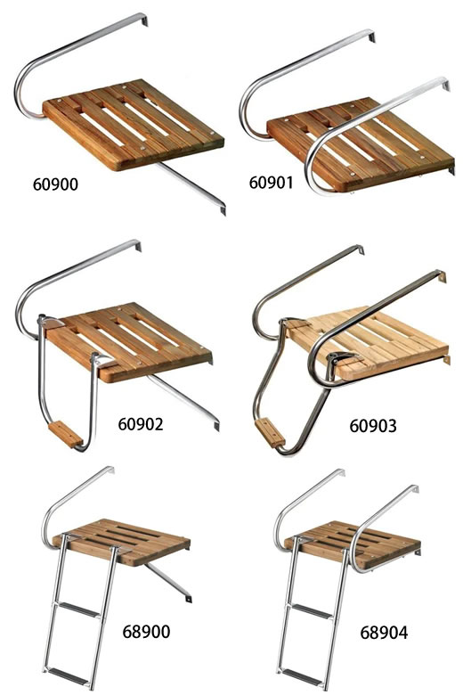 ボートのトランサムに使用するスイミングステップです。ステーの位置を変えれば左右どちらにも設置できます。また、ボートだけでなく壁に設置すれば棚にもなります。チーク材が高騰しているため毎年値上がっています。チーク好きの方は今がチャンス。