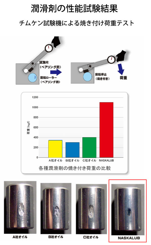 1967年の創業以来、潤滑剤のスペシャリストを自負する化研産業が、従来の潤滑剤では類を見ない、全く新しい潤滑剤として開発した製品がNASKALUBです。耐荷重性能、耐摩耗性能、防錆性能など、潤滑剤が必要とする基本性能を高次元で全て盛り込んだ最高の潤滑剤です。