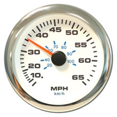 A popular choice for gas and diesel inboard engines, White Premier instruments feature white dials with modern black and blue graphics and superior light pipe illumination. When illuminated, black dial grads and pointer become red. Fog-resistant design for enhanced readability.